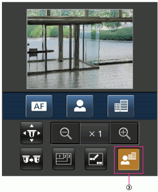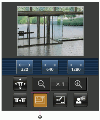 ボタンを押すと、プリセットポジションを選択するためのボタンが画面に表示されます。プリセット番号を表示されたボタンから選択することにより、プリセット登録されたカメラの向きでカメラ画像を表示します。