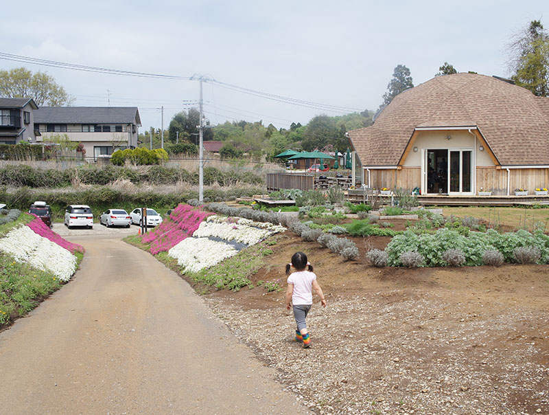 畑方向からドームハウスを見た様子です。