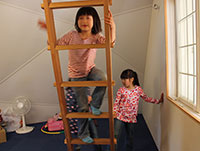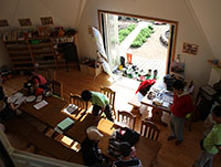 吹き抜けの二階からは元気な子供たちが顔を出しています。